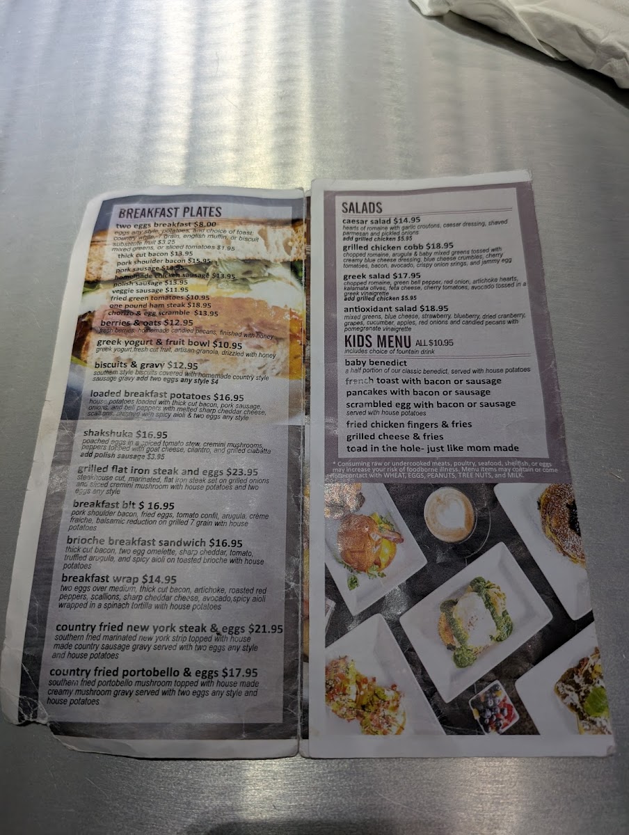 - Fried Egg Tartine: A hearty blend of smashed avocado, sautéed spinach, and artichokes, crowned with medium eggs, all on toasted 7 grain for $14.95.