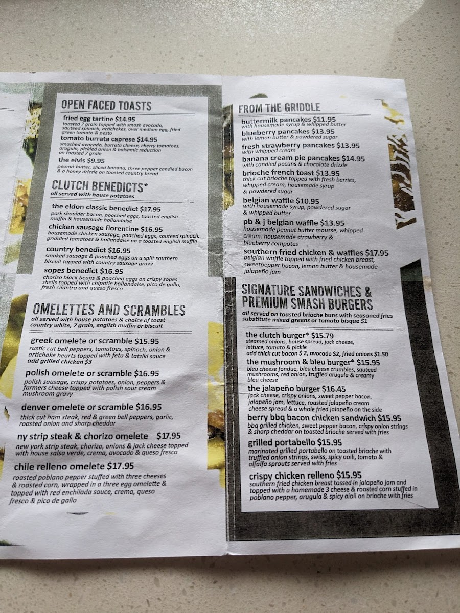 Clutch and Coffee Menu